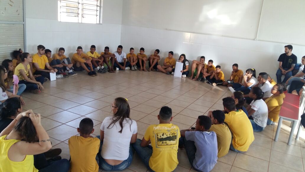Os alunos abordaram como resolver essas situações por meio de uma roda de conversa, apoiada na dialética, e finalizaram com paródias e encenações teatrais.