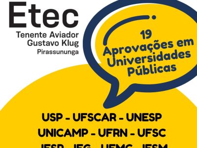 A ETEC Tenente Aviador Gustavo Klug, em parceria com a Escola Estadual Pirassununga, abriram uma turma para o curso técnico de recursos humanos junto com o ensino médio. A partir desta oportunidade oferecida, os profissionais […]
