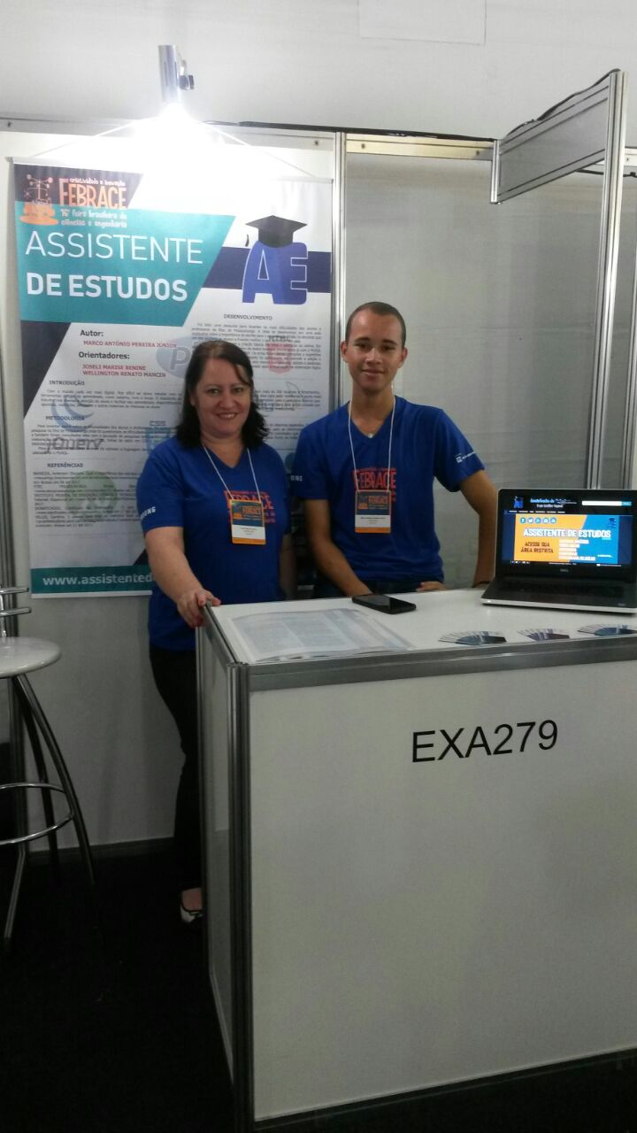 Aluno da Escola Técnica Estadual Tenente Aviador Gustavo Klug, Marco Antônio Júnior, orientado pela professora Joseli Benine expôs seu projeto, o Assistente de estudos (AE) na 16ª Feira Brasileira de Ciências e Engenharia (Febrace), organizada pelo Laboratório de Sistemas Integráveis da Escola Politécnica da Universidade de São Paulo (USP). Ao todo, foram 22 trabalhos desenvolvidos nas unidades do Centro Paula Souza que chegaram à etapa final do evento.