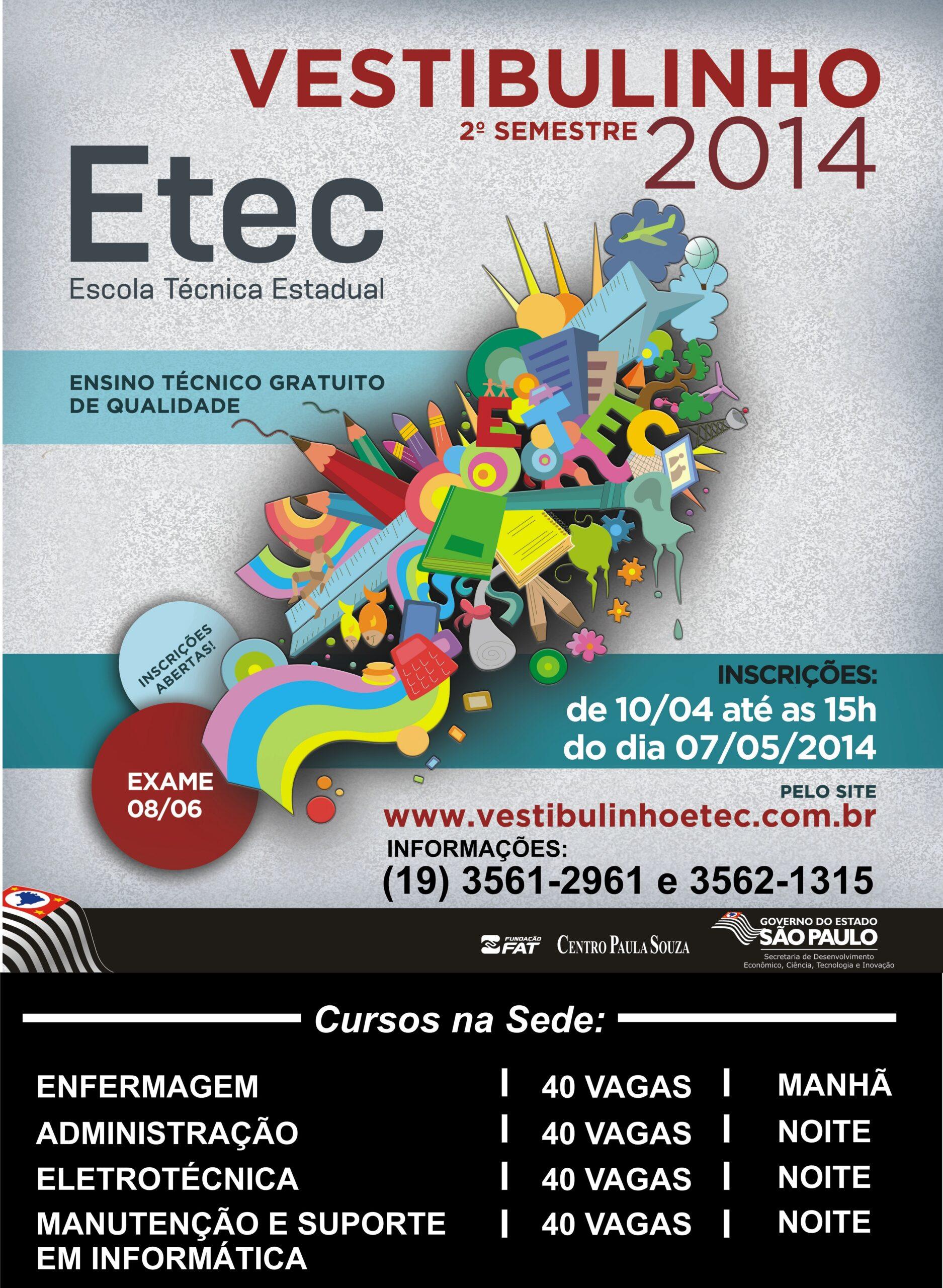Inscrições Vestibulinho 2º Sem/2014 ETEC Tenente Aviador Gustavo Klug.