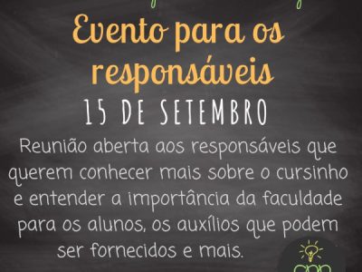 Sábado, dia 15 de setembro (amanhã) acontecerá na ETEC Unidade II um evento para todos os responsáveis de alunos. O “Evento dos Responsáveis” será oferecido pelo Cursinho Popular Pirassununga (CPP) e disponibilizará informações sobre o […]